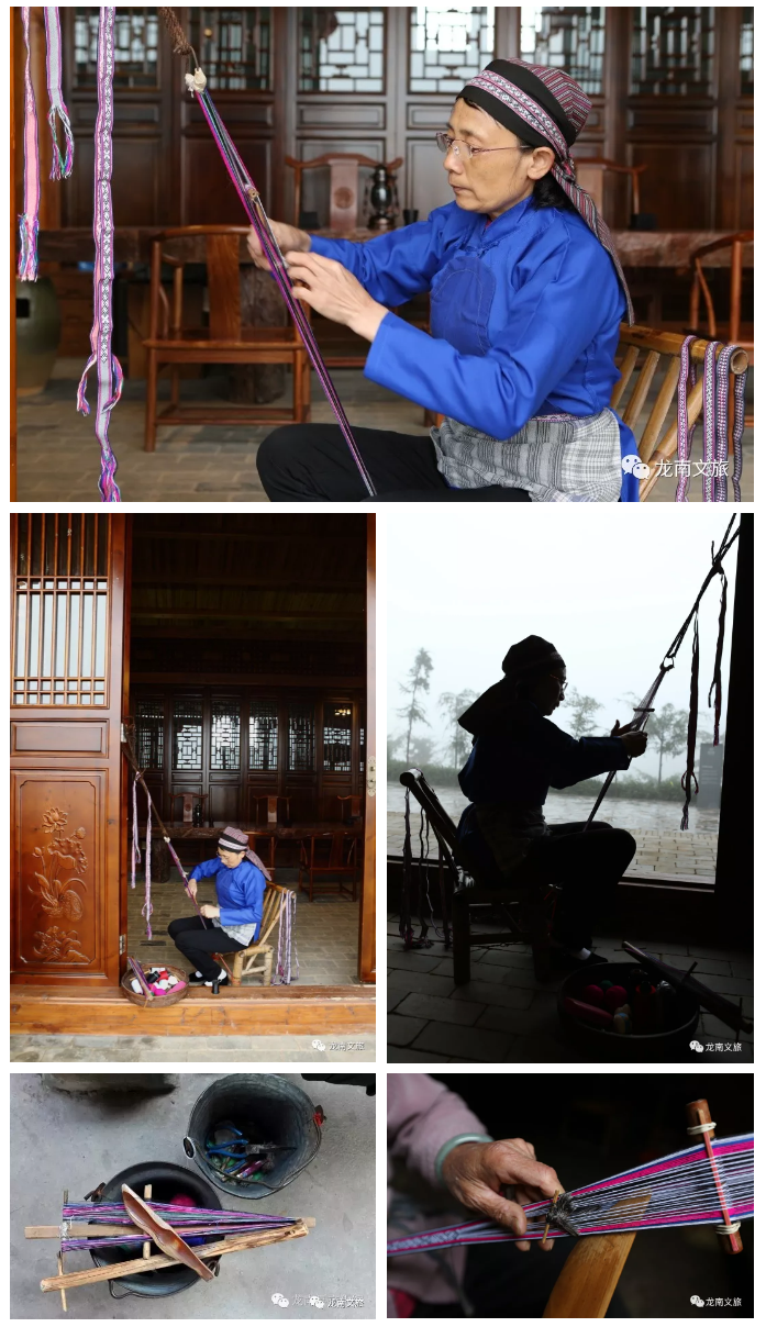 平日里,廖秋华阿姨一直在龙南县关西围景区的承艺坊里,向游客展示客家织带技艺,传播客家文化。她设计编织的织带款式近百种,深受游客喜爱。